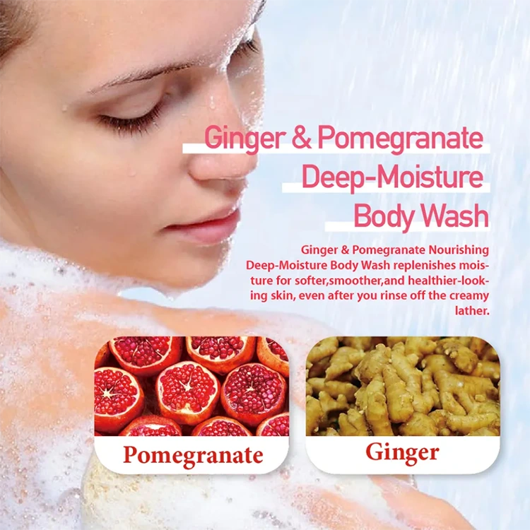 Granatų imbiero kūno plovimo tiekėjas švelniai nusausina negyvas odos ląsteles: sudėtyje yra mažai koncentracijos alfa hidroksi rūgščių (AHA), švelniai metabolizuoja sukauptas odos ląsteles, pagerina odos šiurkštumą ir nuobodumą bei padidina lytėjimo glotnumą.